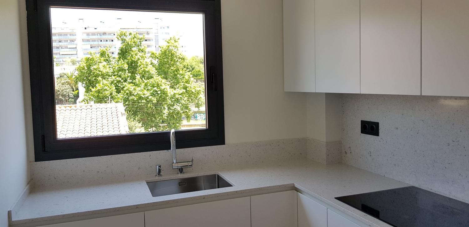 Viviendas de la promoción de C/ Circumval·lació Baixa, 25 de Cerdanyola del Vallès. Como particularidad, estos pisos tienen persianas motorizadas que se pueden subir y bajar a la vez y tienen un sistema eficiente de climatización que funciona con aerotermia.
